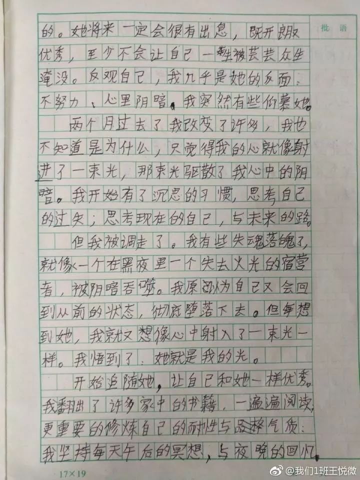 這篇題為《第一次奮進》的作文,仔細讀完,發現明明是《第一次暗戀》,網友感嘆文筆太好了!第一句就被迷住了,這文筆,仿佛詩人。“我悟到了,她就是我的光”