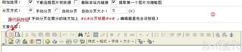 在我們平時(shí)發(fā)布文章①的地方的上面的功能界面中,除了有字體、顏色、大小等按鈕外,還有一個(gè)按鈕叫做源代碼按鈕②,單擊之后,把下面的代碼復(fù)制后粘貼到發(fā)布文章③的地