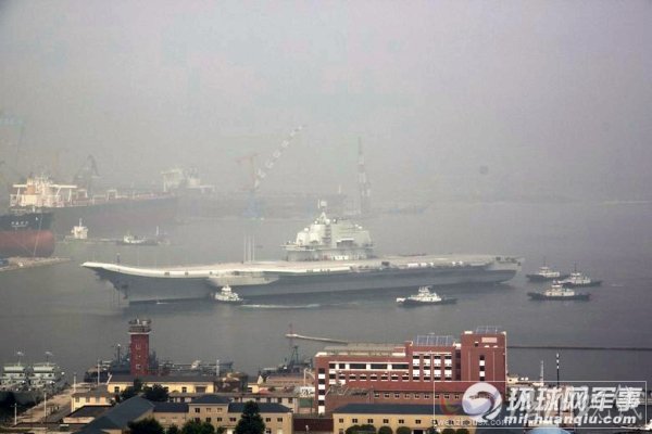 經過四天的試航,今天上午10點半,中國航母平臺瓦良格號返回大連,在7艘拖船的協助下,上午11點半,中國航母停靠出發前的原始碼頭。