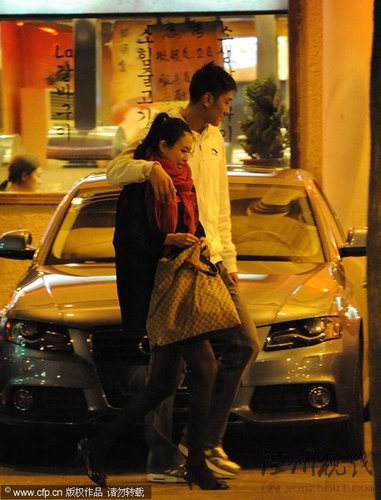 2010年5月11日訊,北京,因“翟凌門”火速走紅的翟凌近日被拍到密約高大帥氣的八一籃球隊(duì)員張博。