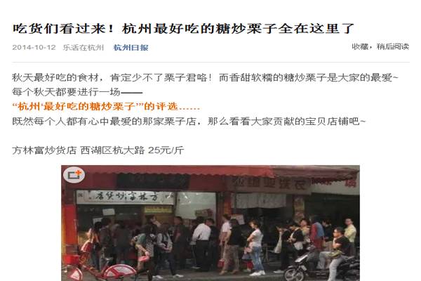 其實(shí),在兩年前,杭州本地一家媒體曾發(fā)文《尋找杭州最好吃的栗子》。