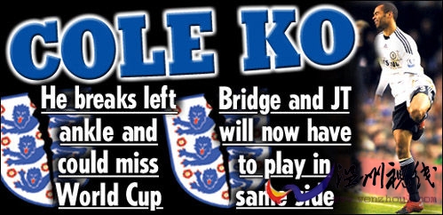 本來在阿什利-科爾身體健康的情況下,這也不是什么大問題,畢竟其他左后衛包括布里奇都不足以對他構成威脅,但阿科爾剛剛被證實將會因腳踝重傷缺陣3個月,就算可以趕上世界杯,他也將缺席此前的所有熱身賽,換言之,英格蘭第2后衛布里奇現在成為了卡佩羅在這個位置上最好的選擇,但這名曼城后衛是否肯再與特里并肩作戰讓卡佩羅非常擔心。