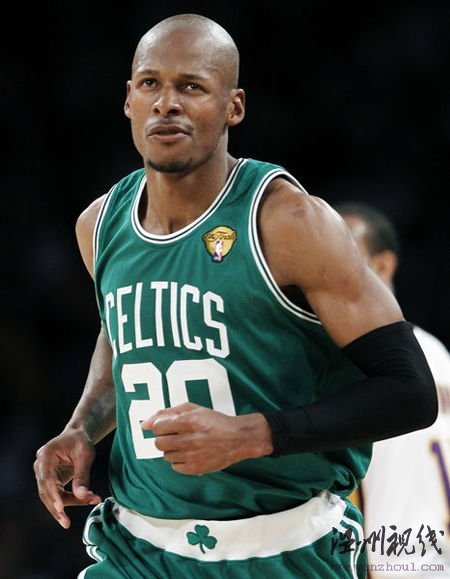 在今天上午進行的總決賽第二戰中,雷-阿倫擺脫了上一場的低迷,上半場就投進7記三分球,狂砍27分,他幾乎無可挑剔的跳投技術讓湖人的防守只得徒嘆奈何。最終,他創造了總決賽紀錄,全場一共投進8記三分球,幫助凱爾特人以103-94戰勝湖人,將系列賽總比分扳成1-1平。