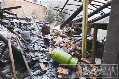 記者在現(xiàn)場看到,發(fā)生爆炸的是一間50平方米大小的簡易平房,地上滿是炸碎的瓦片和焦黑的木柱,幾只大小不一的鋼瓶倒在地上。由于爆炸威力較大,該房子的房頂被整個掀掉,木板、橫梁橫七豎八地倒在瓦礫中,磚塊呈半圓狀散落在爆炸點(diǎn)周圍。所幸的是,周邊居民樓沒受到嚴(yán)重?fù)p毀。
