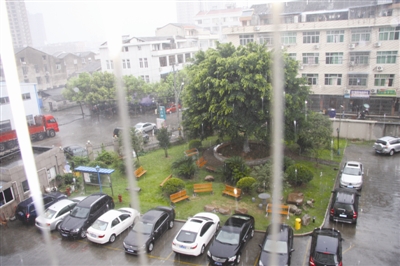 朱晨哲說,昨天中午12時許,小區里狂風大作,隨后就下起了大雨,雨里還伴著片片“雪花”。“太罕見了,我趕緊取出相機,拉開客廳玻璃窗,連拍了兩張照片。”由于雨天,他打了閃光燈。記者通過他提供的照片看到,窗外空中確有斑斑疑似雪花的白點。
