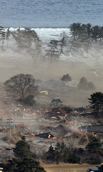 日本地震-日本3月11日大地震,仙臺宮城地區遭遇10米高的日本海嘯。日本近海3月11日發生了里氏8.9級大地震,日本東京震感強烈。仙臺機場被沖毀,大量農田、房屋被淹沒,東京市民紛紛到戶外躲避地震。日本3.11大地震死亡人數在不斷上升,毀壞房屋汽車農田不計其數。