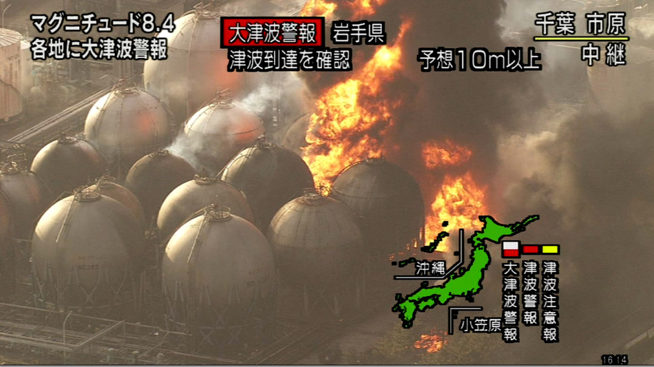 日本地震-日本3月11日大地震,仙臺宮城地區遭遇10米高的日本海嘯。日本新聞網報道當地時間下午2時46分,日本東北三陸近海發生8.8級大地震,隨后的3時24分,再度發生7.4級強烈余震。日本氣象廳隨即發出大海嘯警報。到日本新聞網發稿止,仙臺新港遭遇了10米高的海嘯,大量農田、房屋被淹沒。