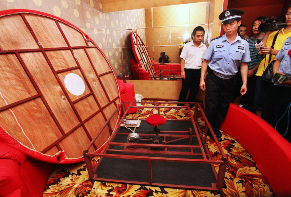 2010年8月13日晚至14日凌晨,西安市公安雁塔分局出動600余名民警,分成9個組,對全區60余家歌舞游藝、洗浴、足浴、桑拿等娛樂服務場所涉及 “黃賭毒”的情況進行突擊檢查。勒令4家違法經營的大眾舞廳停業整頓,6名涉嫌容留介紹婦女賣淫的當事人被刑事拘留。另外拆除“紫荊城水療城”內涉嫌為客人提供色情服務的“合歡床”兩張。