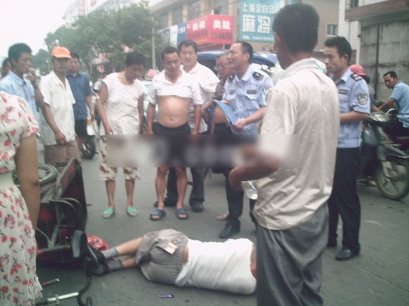 10日中午12時許,興化市陽山大橋,一名老人騎三輪車下橋時不慎摔倒,躺倒在地爬不起來,卻無人敢扶起來,不是路人冷漠,是大家都被賴怕了,天津市許云鶴因攙扶違章爬馬路護欄摔倒的老太被誤判賠償10萬元,大家都心有余悸。http://m.chinajxst.com/news/shehui/38998.html前后長達15分鐘之久。其間不少人經過該處,有人甚至駐足圍觀,但始終無人伸手拉老人一把。