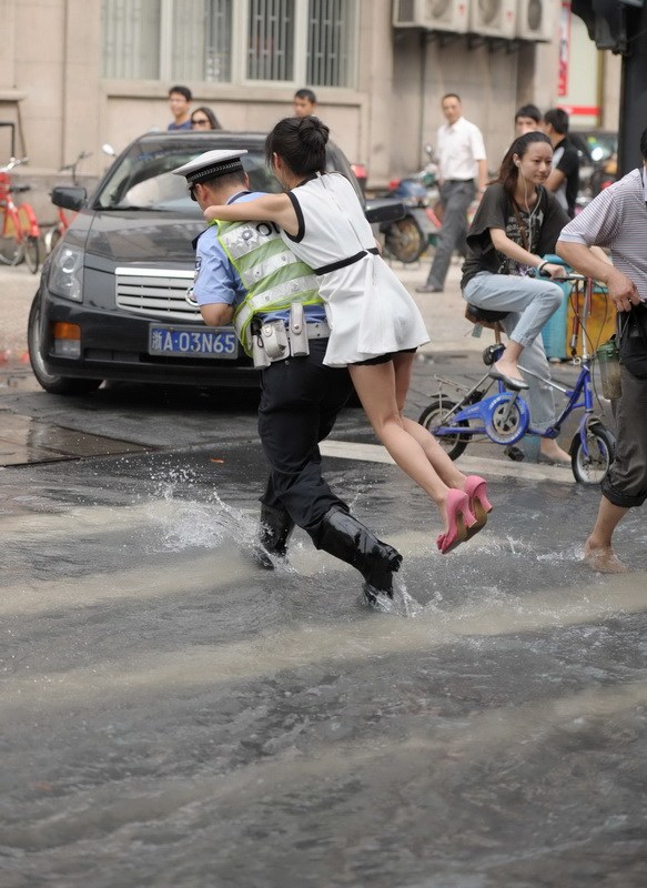 杭州朝暉路上的一根自來水管爆裂,導致路面被淹,上班族受阻,有一位交警背女孩“過河”,記者找到了背妹子的下城交警大隊朝暉中隊交警林安敏。當記者撥通林安敏的電話時,他說老婆在微博上看到了他背女孩,回家要搓衣板伺候了。林安敏的老婆不會這么小氣吧?就背一個姑娘過馬路而已,圖片上看到,林安敏的手一直放在自己身前,背上的妹子自己用力趴在林安敏的背上,這也算犯規嗎?不算的。林安敏這也要跪搓衣板,網友可不答應。
