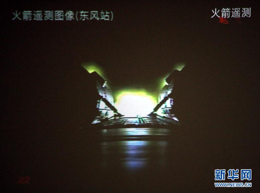 天宮一號發射升空照片,9月29日,中國在酒泉衛星發射中心用長征二號F運載火箭將天宮一號目標飛行器發射升空。圖為在北京航天飛行控制中心拍攝的左側大屏幕監控畫面。王永卓 攝 圖片來源:新華網