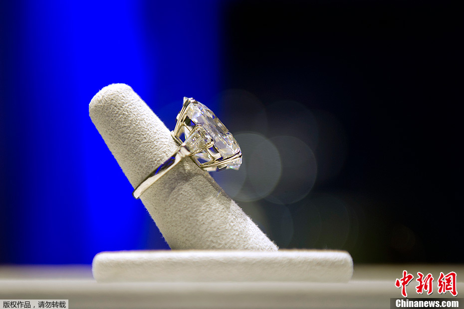 11月15日,在法國巴黎的克里斯蒂拍賣行,一枚33.19克拉鉆石的鉆戒擺在伊麗莎白·泰勒與第五任丈夫理查德·伯頓的合影前。已故美國影星伊麗莎白·泰勒不僅是時尚偶像、慈善家,還是一位狂熱的珠寶收藏家。她生前所擁有的百余件珍藏珠寶精品于2011年9月15日開始為期3個月的全球巡展,并將于2011年12月在紐約佳士得拍賣行進行拍賣。