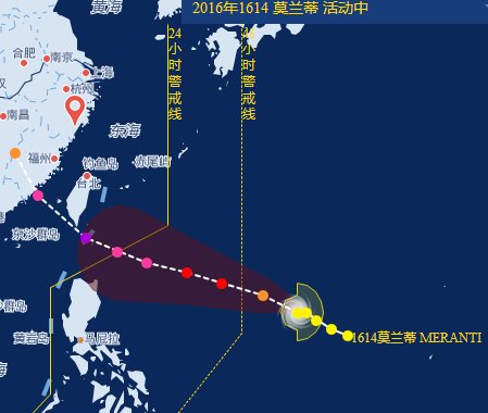 2016年14號臺風莫蘭蒂:9月10日下午2點生成,預計莫蘭蒂臺風路徑向西北移動,可能在9月15日前后登陸廣東福建沿海,中秋前后臺風莫蘭蒂可能影響溫州,但是登陸溫州可能性不大。