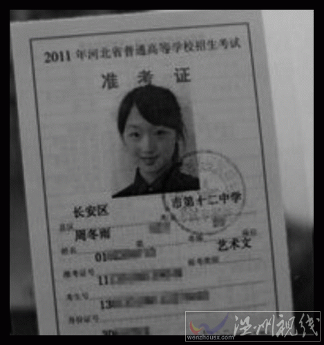 網上爆出的周冬雨準考證圖片(圖片來源:網絡)